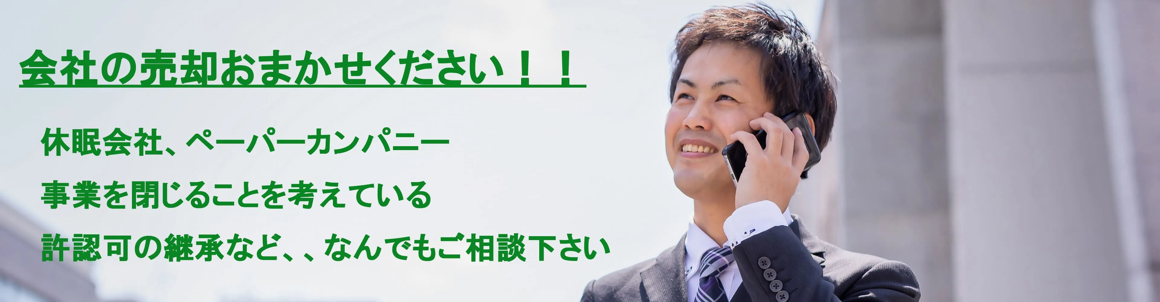 中には数年前に事業はストップしてしまったが、不要な法人格を処分したい、という方もおられるかと損 じます。いわゆる休眠会社と呼ばれるような法人ですが、そういった法人にもこれまでの活動実績など、 価値はございます。費用をかけ解散するよりもわずかでもお手元に資金を残すことが可能です。